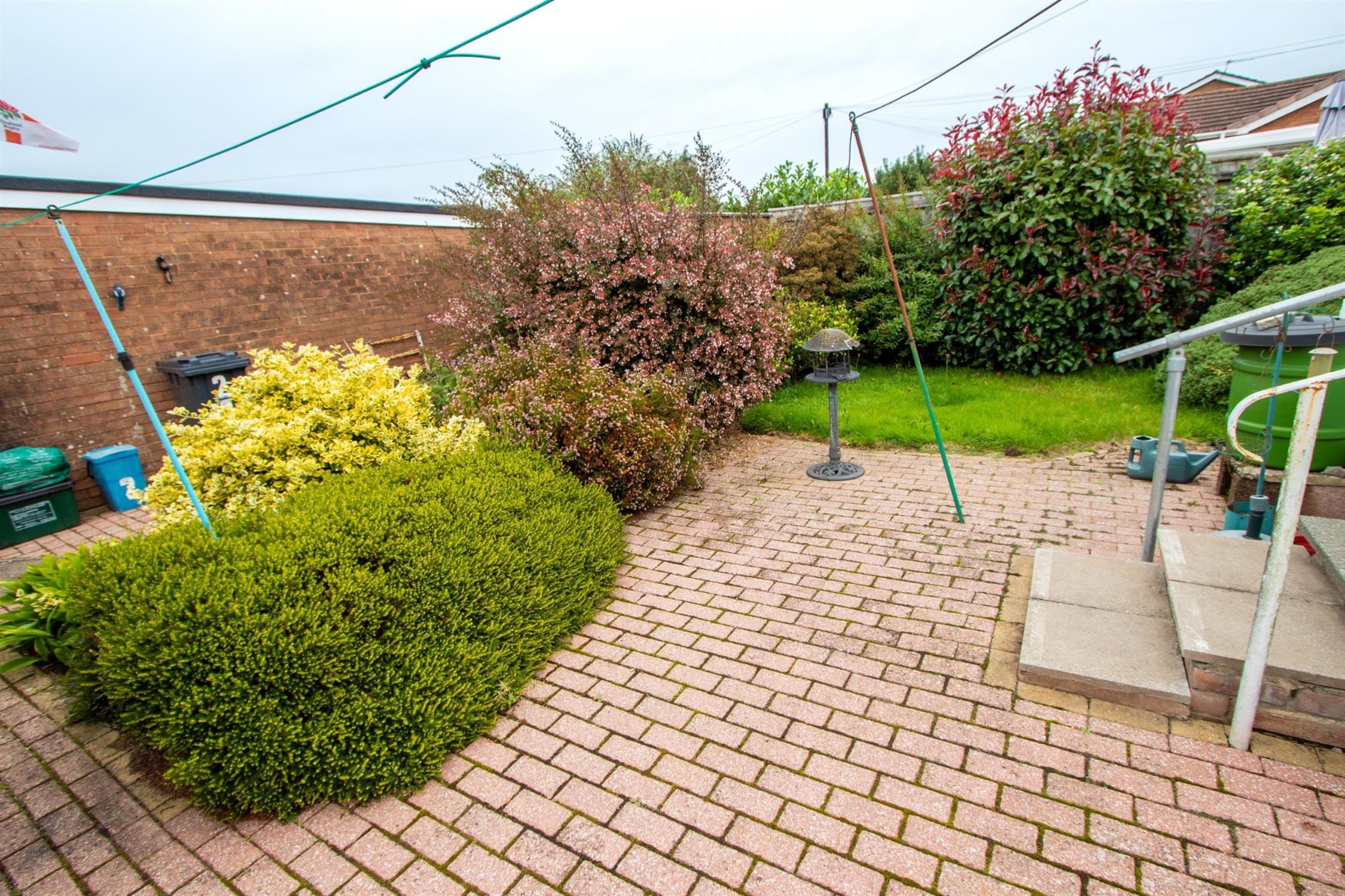 The outside: The property is located on a corner plot, to the front of the property there are two lawned gardens with shrubs, with pathway leading to the property. There is a brick paved pathway to the side with further lawned garden, well-stocked flower border and shrubs, this opens into the rear garden which is brick paved, small lawned garden with shrubs and pedestrian gate given access to the garage with up and over door.