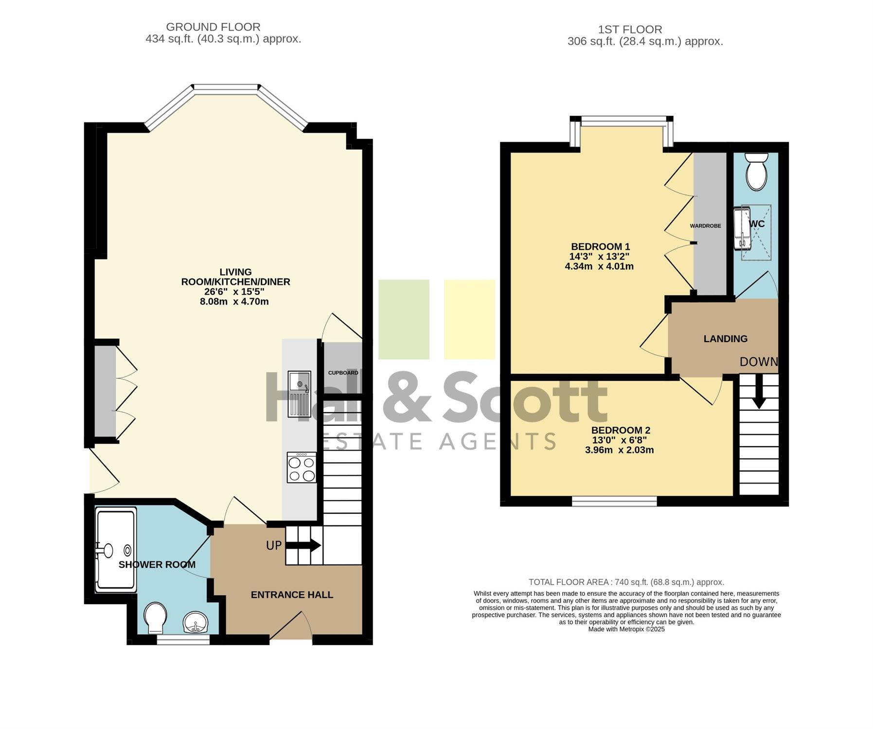 The accommodation comprises: an entrance hall, WC/shower room, a spacious light open plan lounge/dining room/kitchen area with integrated washer/dryer, dishwasher, fridge/freezer, oven & induction hob and large storage cupboard. On the first floor are two double bedrooms and a separate WC.