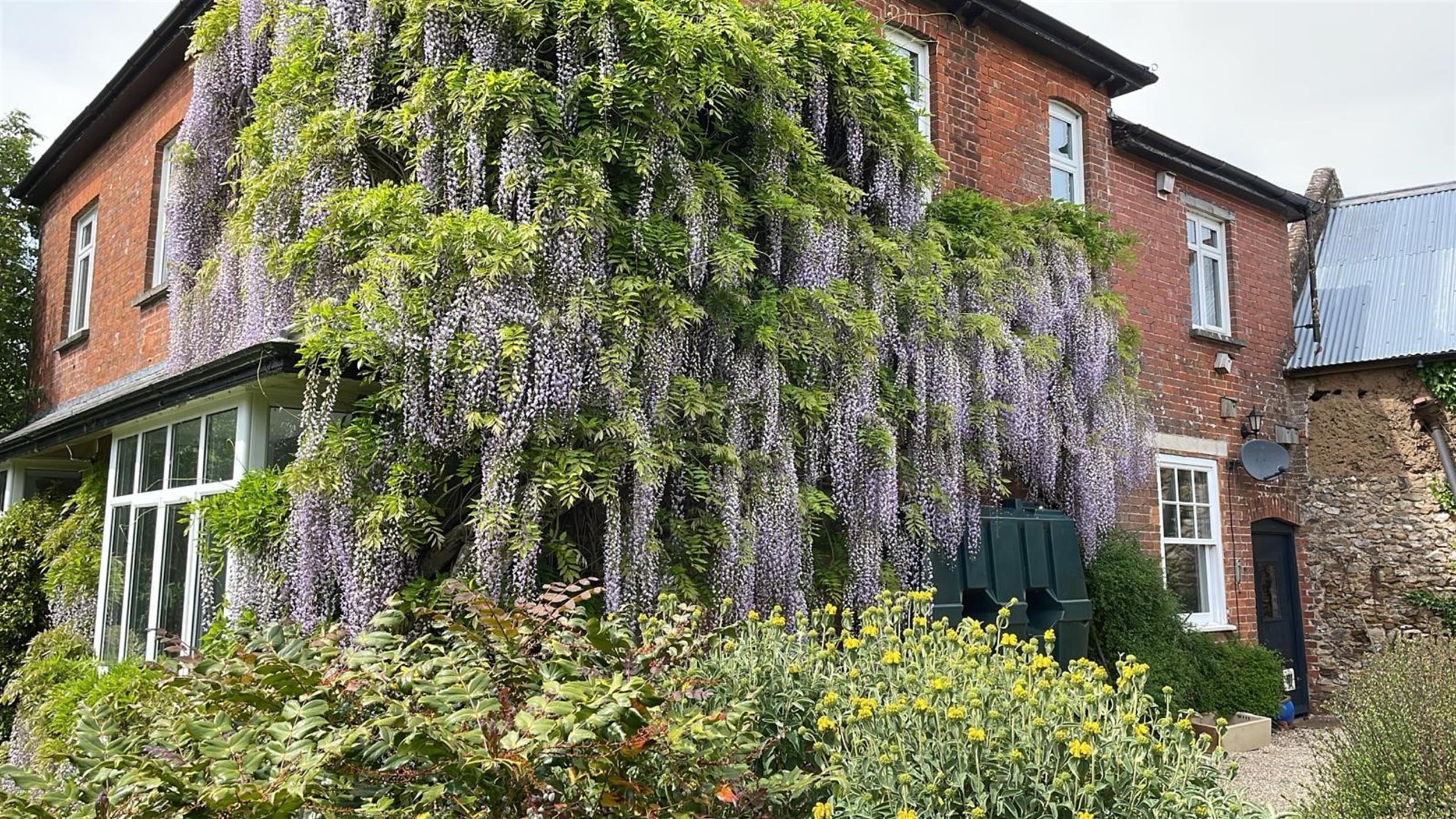 Five-bedroom period home with three reception rooms, attached a two-bedroom cottage, large gardens and two driveways.