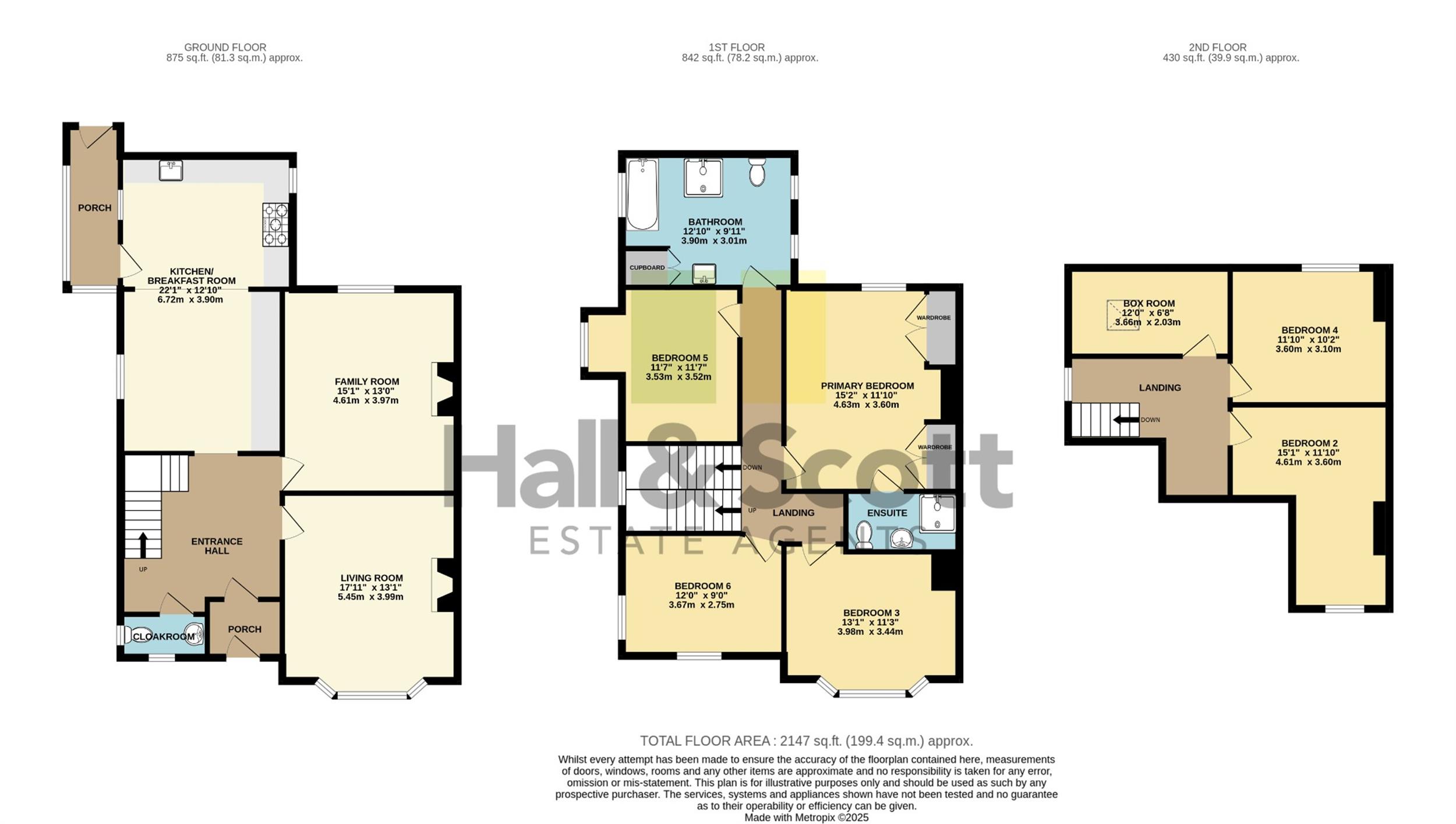 On the first floor there are four bedrooms; the primary with an ensuite shower room and there is also a large family bathroom suite. On the second floor there are two further bedrooms and a box room. The property also benefits from gas central heating.