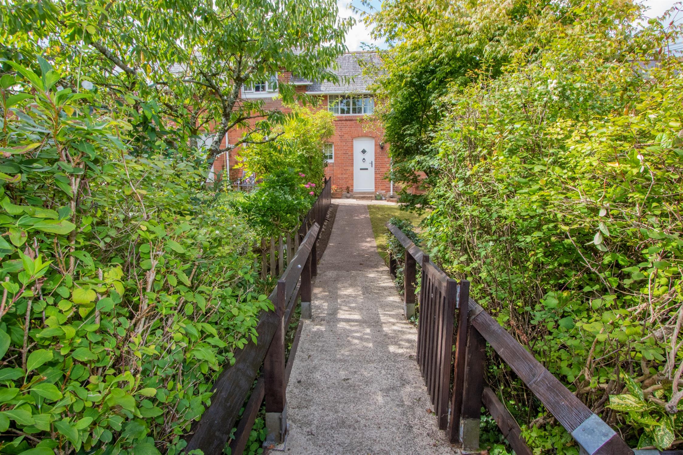 OutsideTo the front is hardstanding offering parking, you then walk over a pedestrian bridge to a lawned garden with plants, shrubs and trees. To the rear, the garden is designed with ease of maintenance in mind, there is a courtyard area, raised timber decked patio and a raised flowerbed. There is an outbuilding (2m x 2.53m) which has light, power and plumbing for washing machine. The property has access to parking at the front.