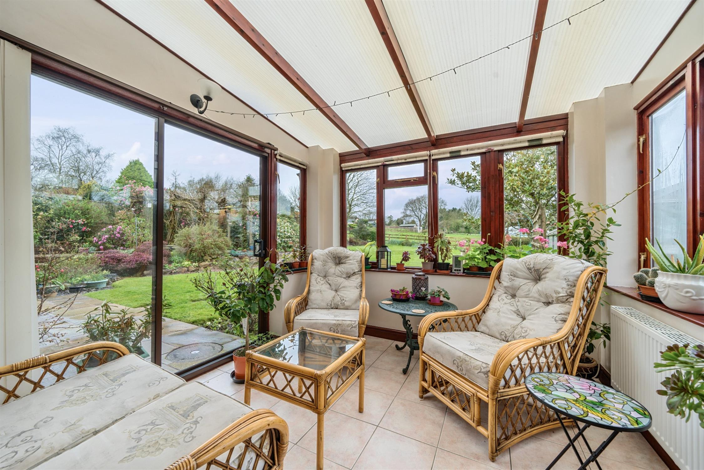 OutsideThe garden is west-facing and has wonderful views over the open countryside. There is a private patio area easily accessed from the Kitchen, large lawn with shrub and flower beds, raised beds, greenhouse and two sheds. To the front is parking for several cars, lawn and shrub boarders accessed through a five bar gate. There is a double garage with single electric door, floor mounted oil boiler and access to roof storage. Private Drainage
