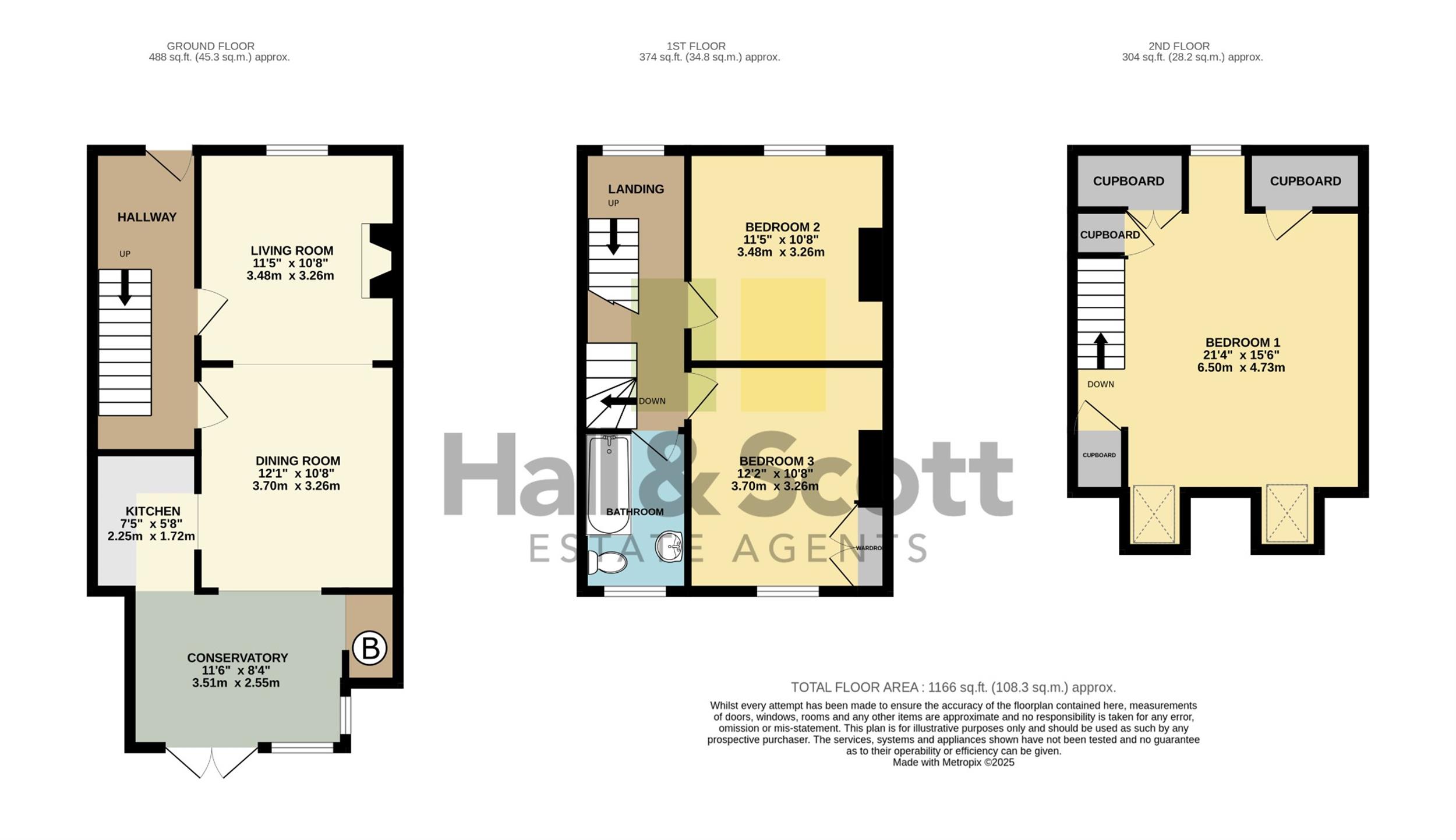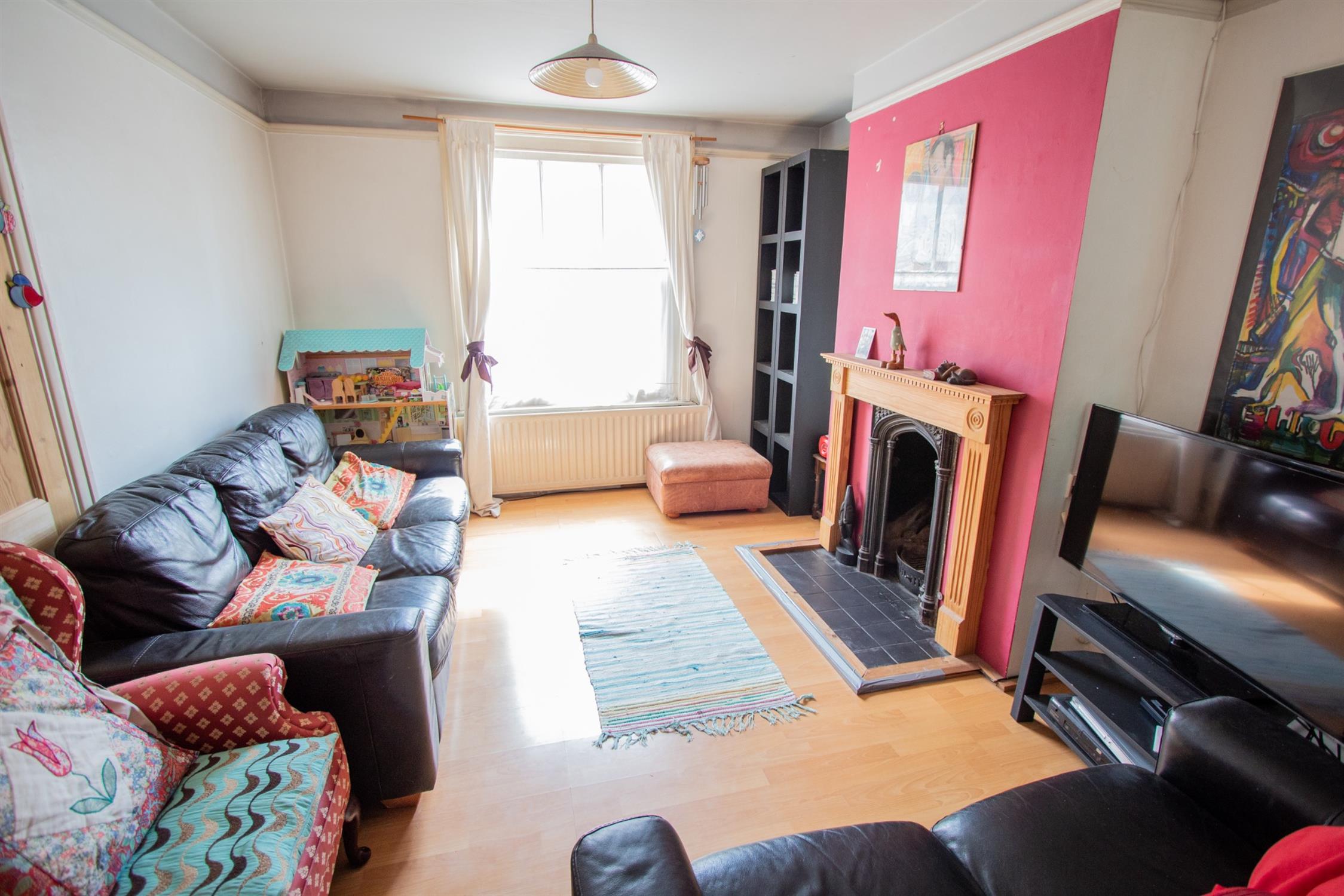 On the first floor, there is a generous landing area—ideal for use as a home office—two bedrooms, and a family bathroom. The second floor offers a further spacious double bedroom.