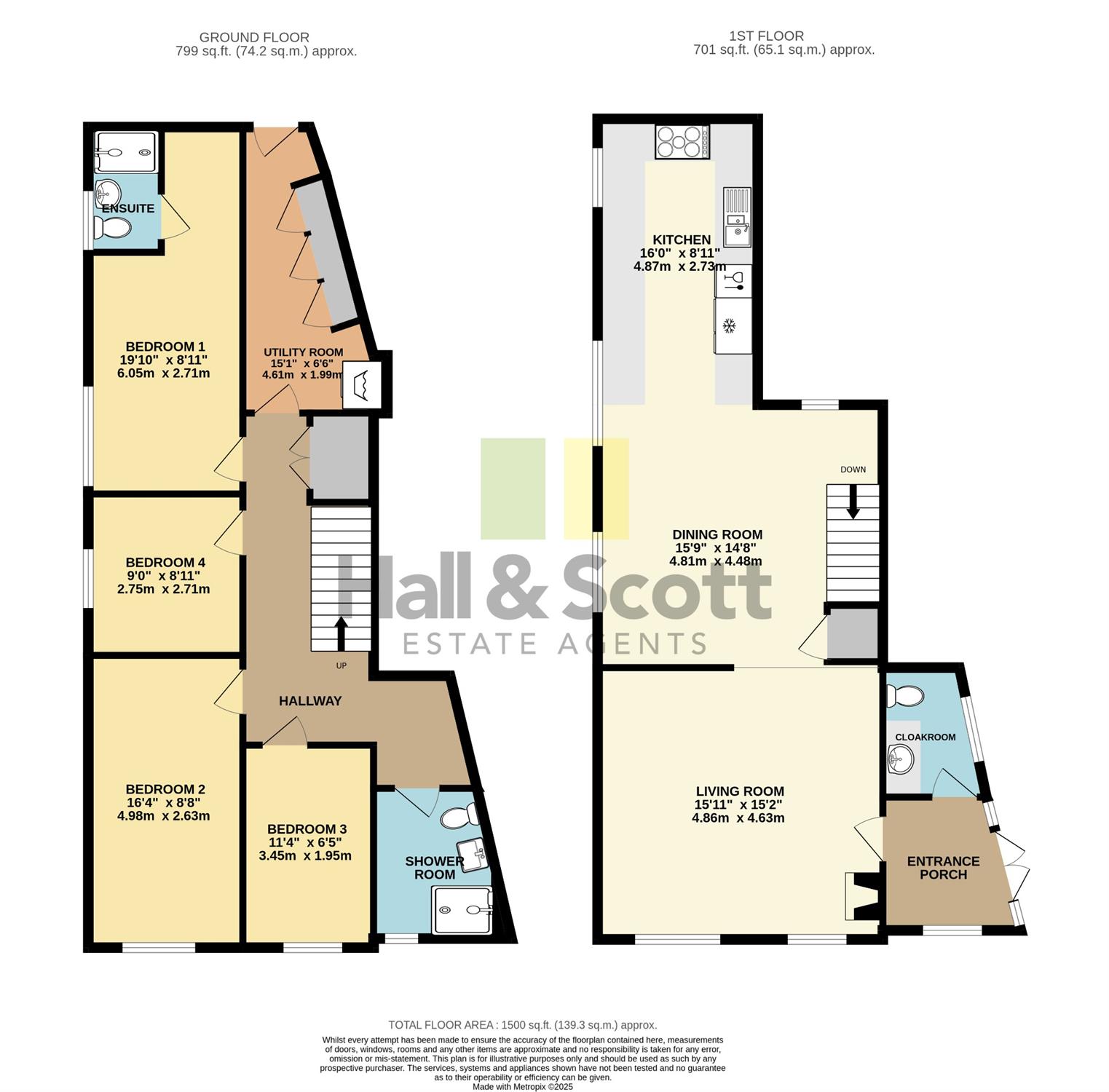 The light and airy accommodation, which is arranged with the living accommodation on the first floor and the bedrooms on the ground floor comprises; entrance hallway with tiled flooring, cloakroom with vanity unit and tiled floor. The living accommodation is a large open plan living space flooded with light, the living room is dual aspect and has a Villager wood burner and oak flooring, this opens into the dining room, which also has oak flooring. The kitchen has been re-fitted and has a range of wall and base units, Corian worktops, integrated appliances - dishwasher, American style fridge/freezer with water and ice cooler and range style cooker with extractor hood over. On the ground floor there is a spacious hallway with doors leading to the 4 bedrooms, the main bedroom has tiled flooring with electric underfloor heating and an en-suite shower room. The 3 further bedrooms have wooden flooring and there is a family shower room with a tiled floor and a utility room also with tiled flooring.