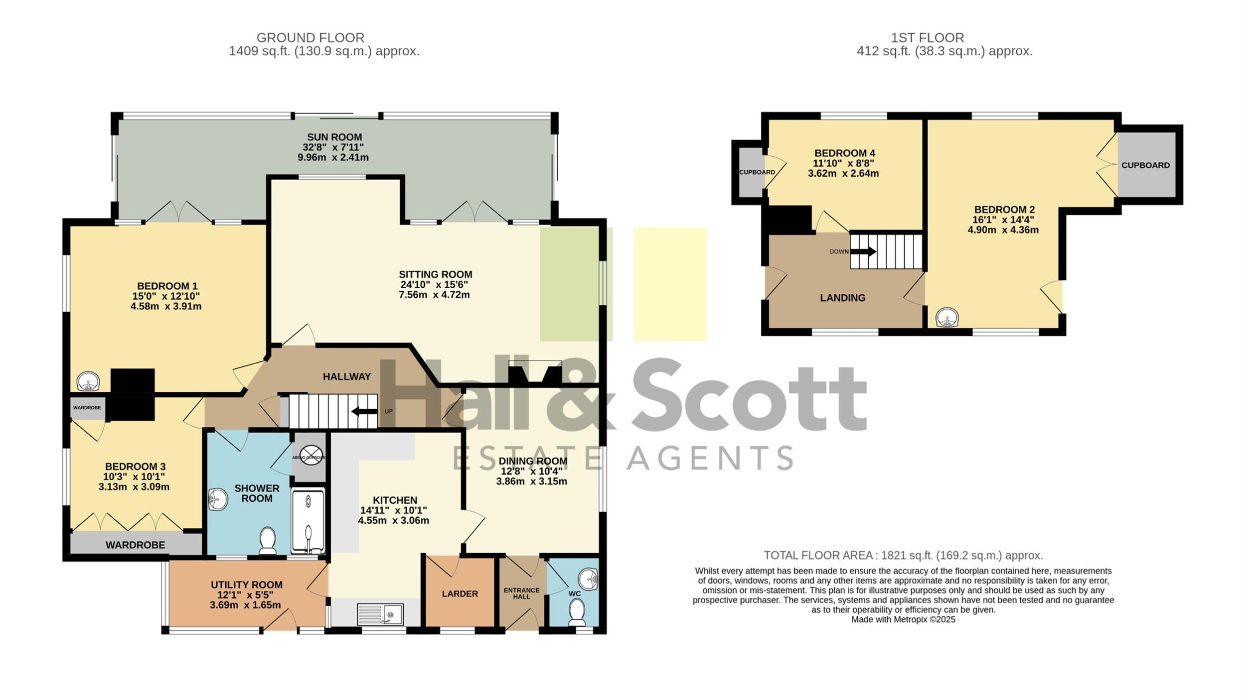 Upstairs, the first floor comprises two further bedrooms and a large landing area, offering the potential for a home office or reading space.