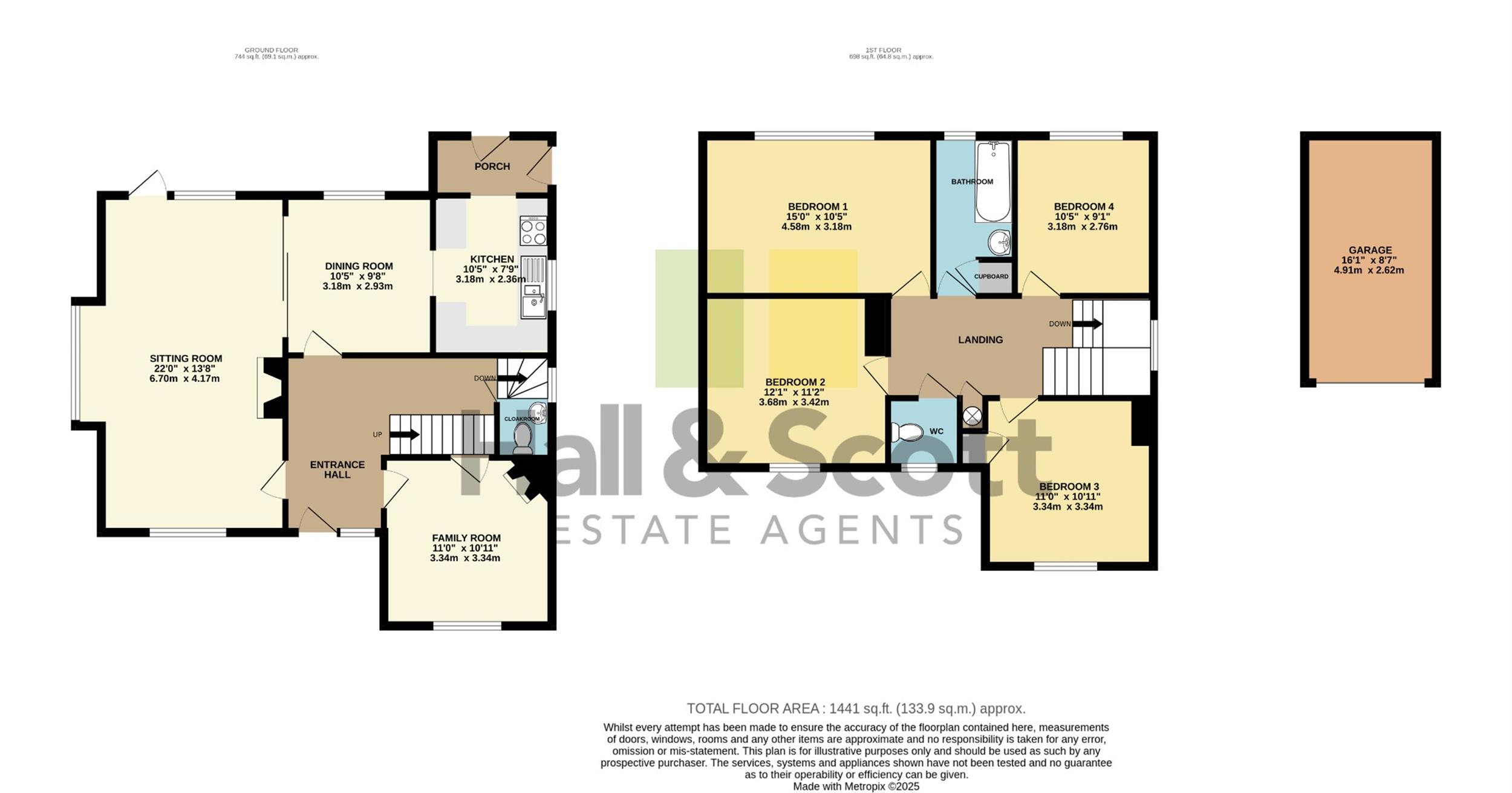 Upstairs is a very spacious landing with access to the loft. There are four good-sized bedrooms, an attractively appointed family bathroom with a shower over the bath, and a further separate WC.