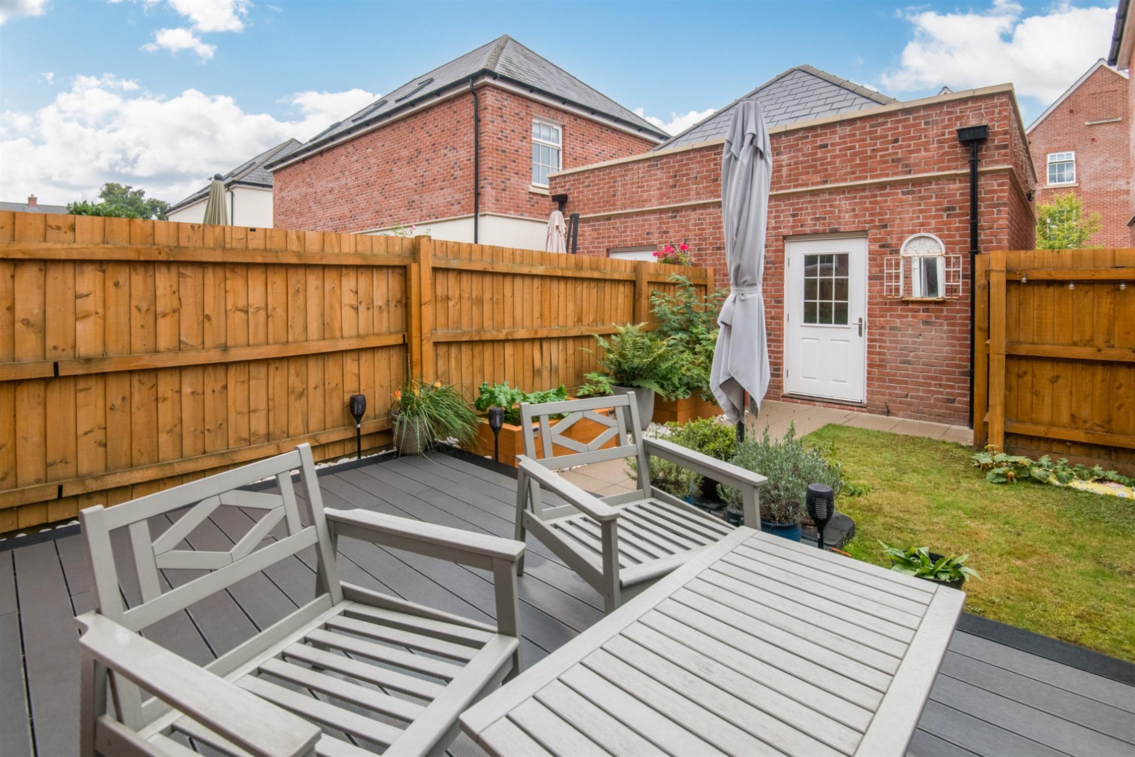 The outsideTo the front is a stocked garden with shrubs. To the rear, the garden has been attractively landscaped, with composite decking, lawned gardens, and raised beds. There is a personal door into the garage (6.08m x 3.06m) with light, power and electric car charging point, up and over door with driveway to front offering parking. From the rear garden there is also rear pedestrian access.