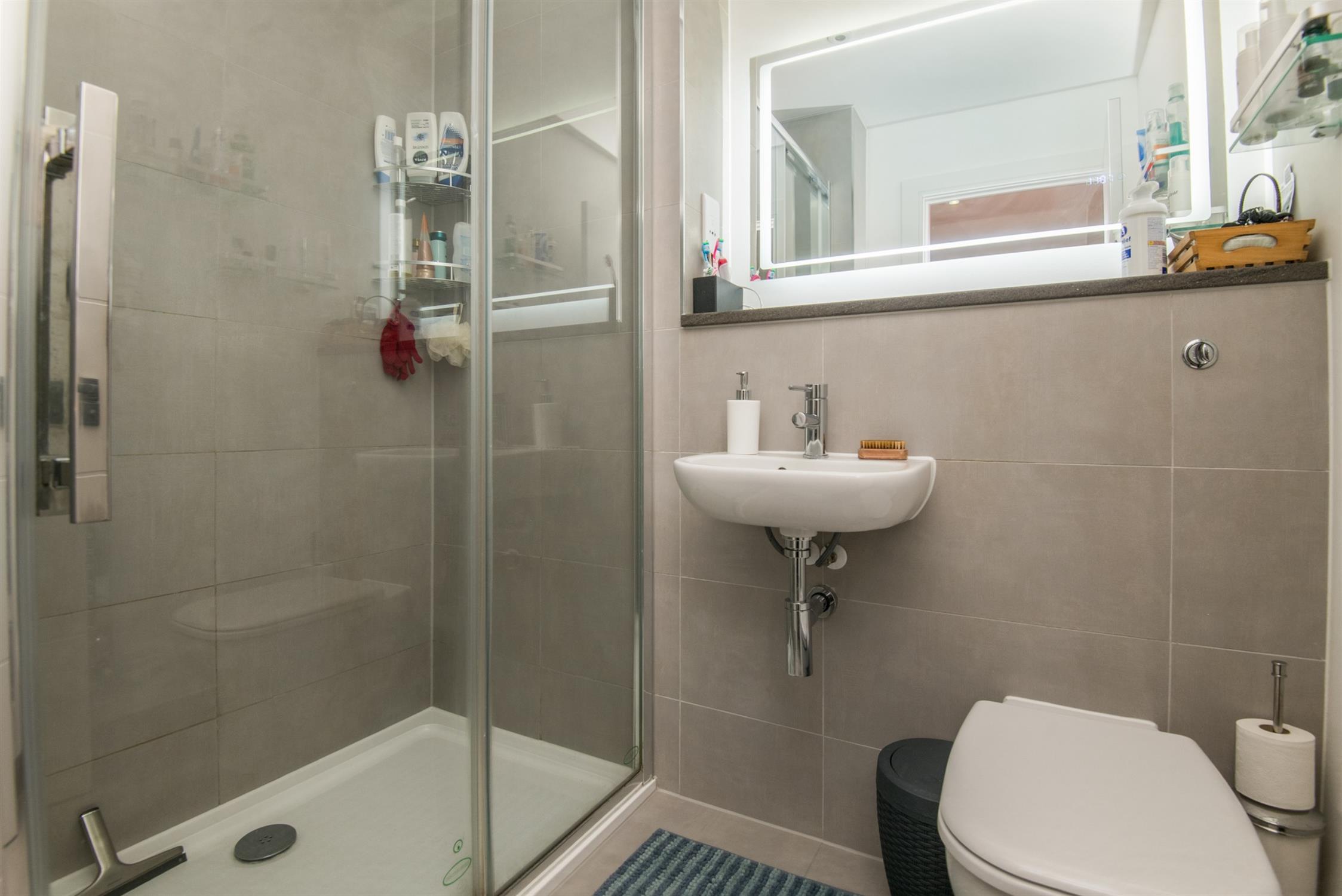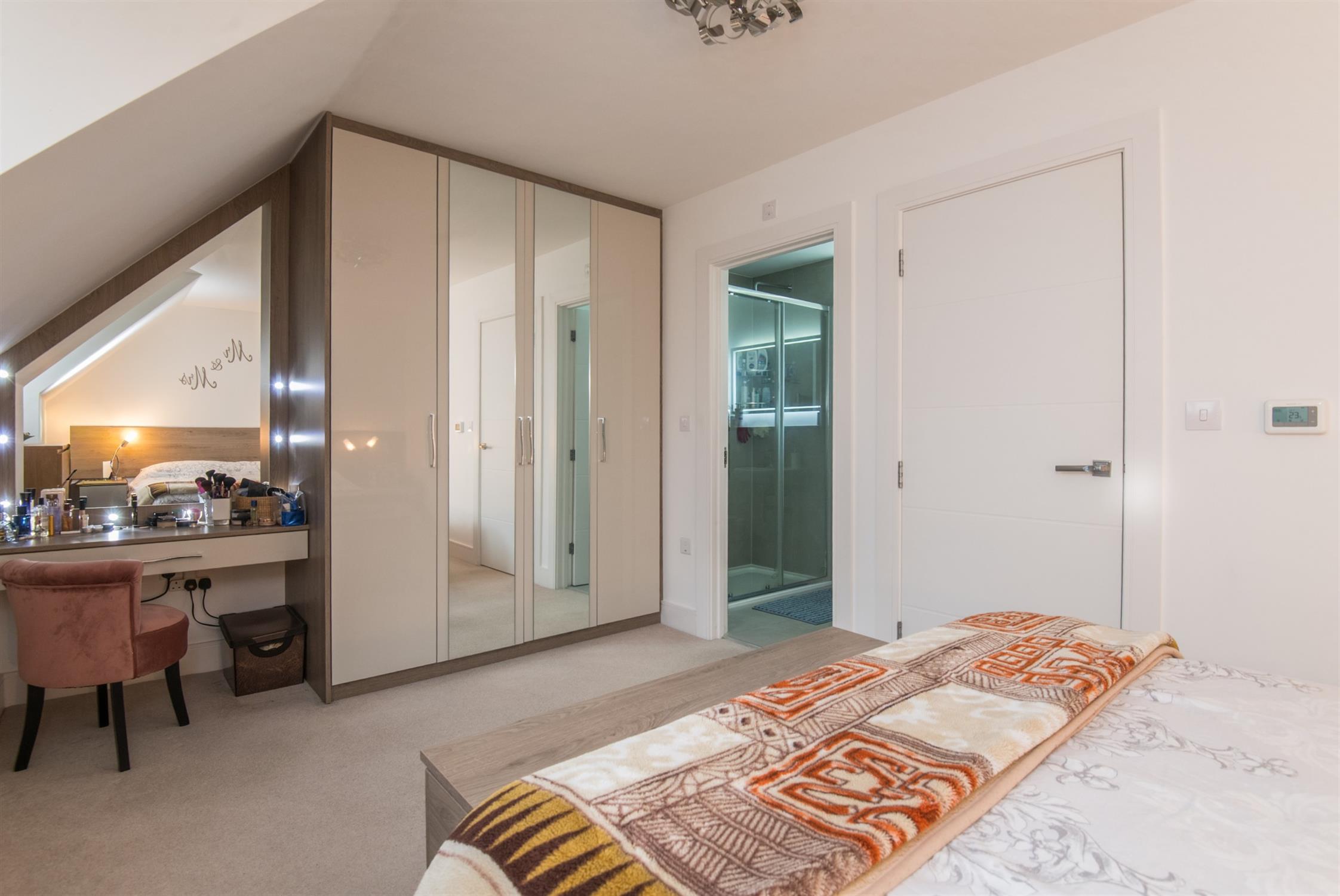 On the second floor there are two further bedrooms; the master has built-in wardrobes, a dressing table and an en-suite shower room. The second bedroom also has built-in wardrobes.
