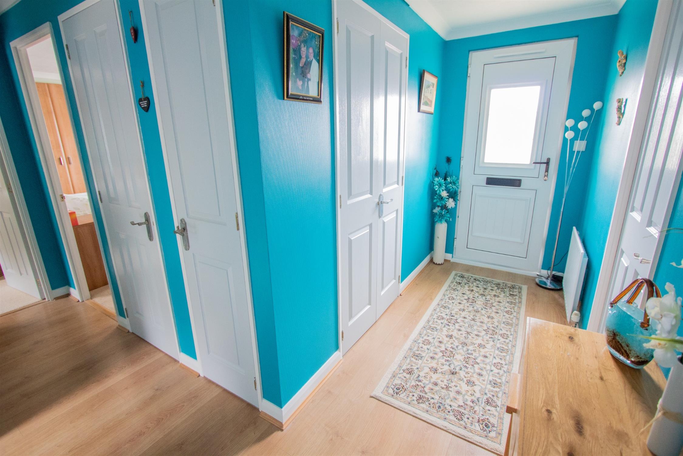 Located on a corner plot, to the front is a paved pathway with lawn, a double-width driveway to the side, offering parking which leads to the garage (6.52m x2.84m) electric up-and over-door light and power. To the rear of the garage is an office/workshop (2.83m x 1.84m) light, power and personal door into the garden. The rear garden has been designed with ease of maintenance in mind, paved with gravel surround, raised rockery, shrubs.