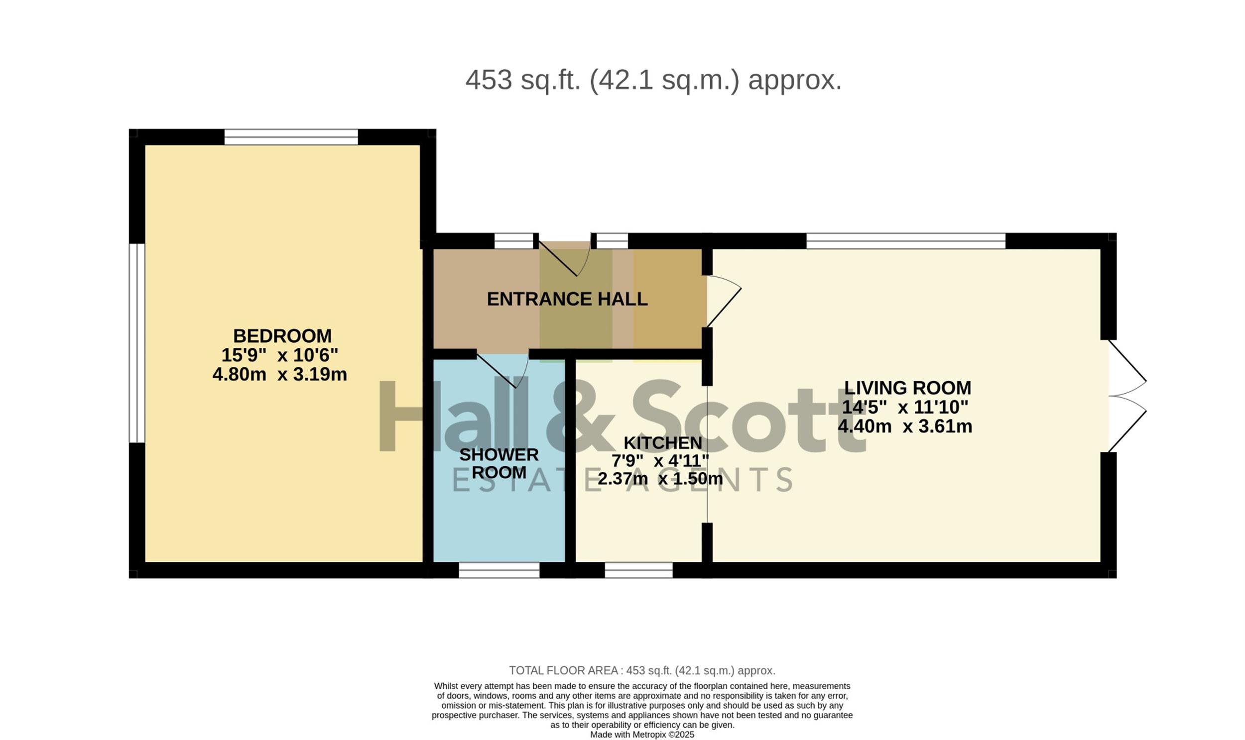 Bungalow annexe accommodation comprises: Living room, kitchen, shower room and bedroom.