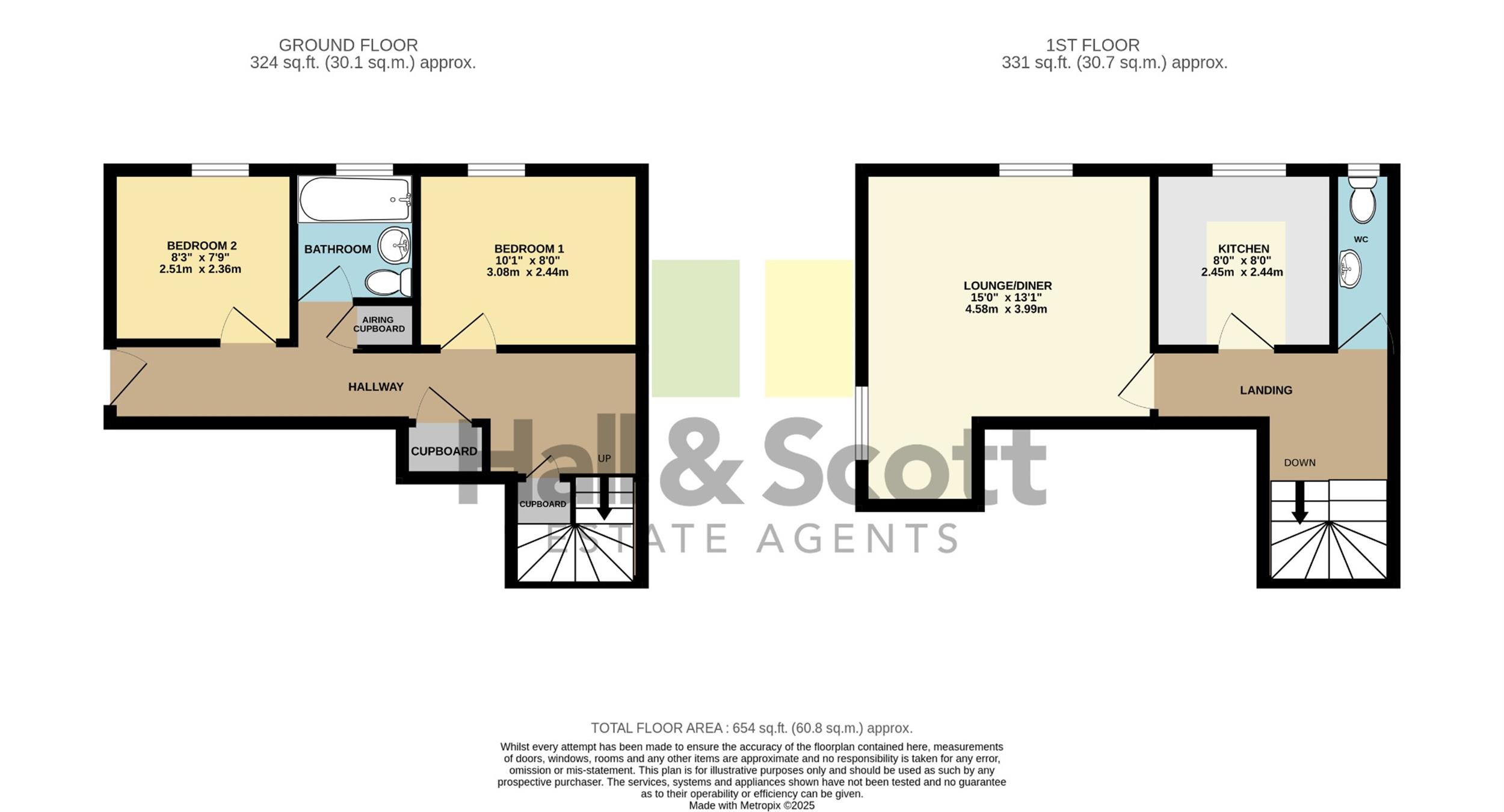 The accommodation, which is arranged over 2 floors, has a communal entrance hall with a private door into the apartment. The accomodation comprises: a hallway with storage cupboard, 2 double bedrooms and a bathroom on the ground floor.