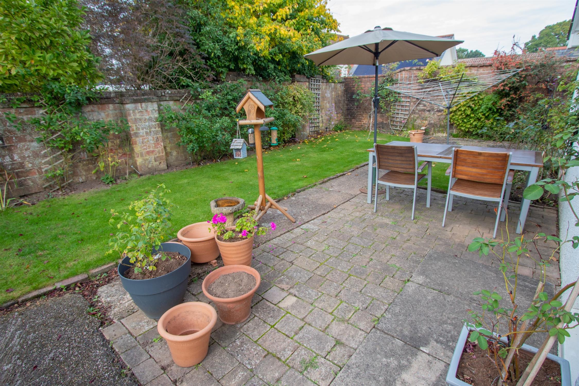 To the front is an attractive-walled garden, lawned with well-stocked flowerbeds, gravel pathway and paved patio, a single garage with an up-and over door light, power and rear and personal door. There is also additional brick paved parking for 3 cars. There is a pathway to the side with flower beds, again well stocked. This opens into the rear garden, which is laid to lawn with a blocked paved patio, flowerbeds. There is a pathway on the other side leading back to the front.