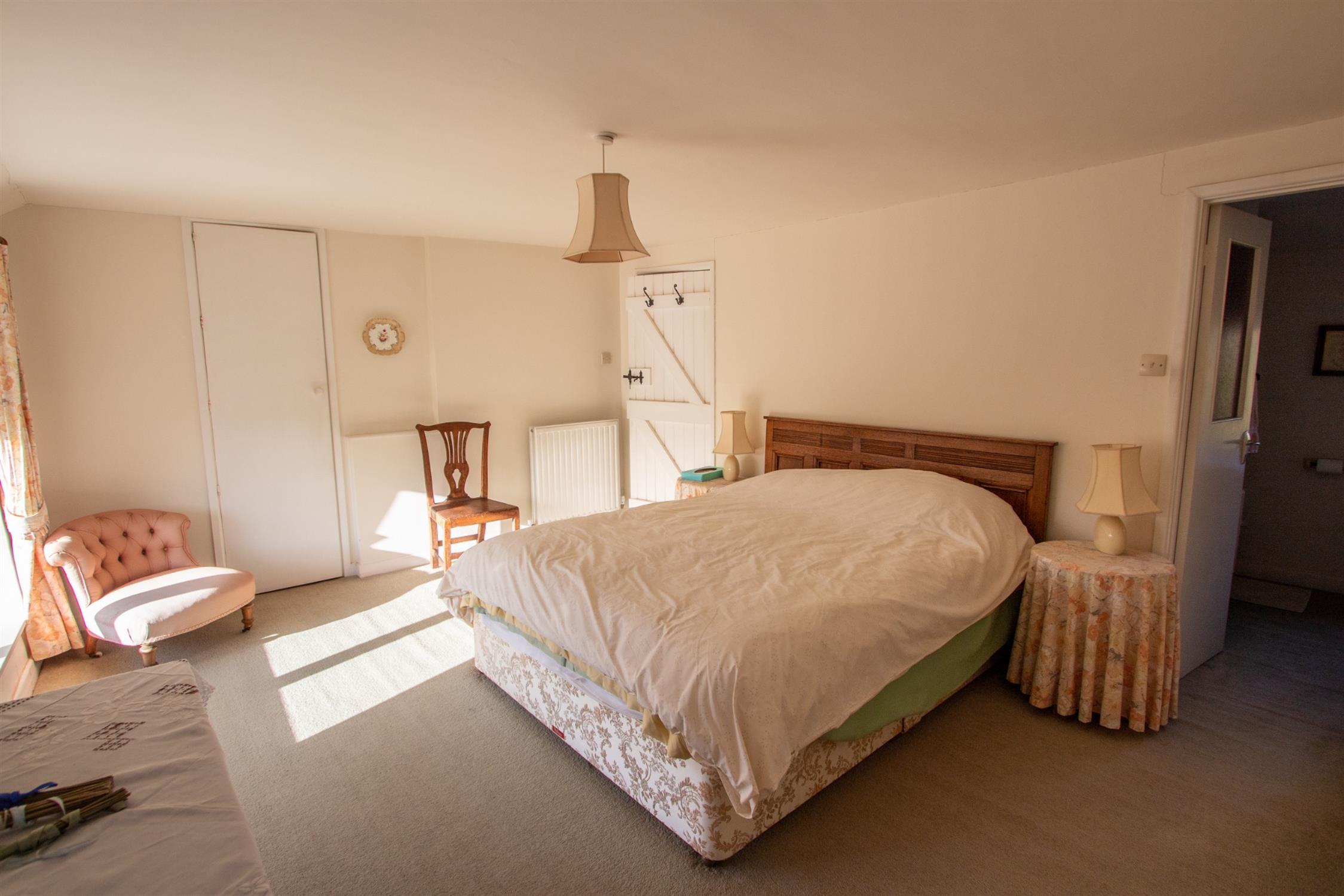 From the dining room, a doorway leads to a versatile wing comprising a study/sitting room, a double bedroom with dual-aspect windows, a family bathroom and an additional kitchen. This area lends itself perfectly to use as a self-contained annex, guest accommodation or multi-generational living.