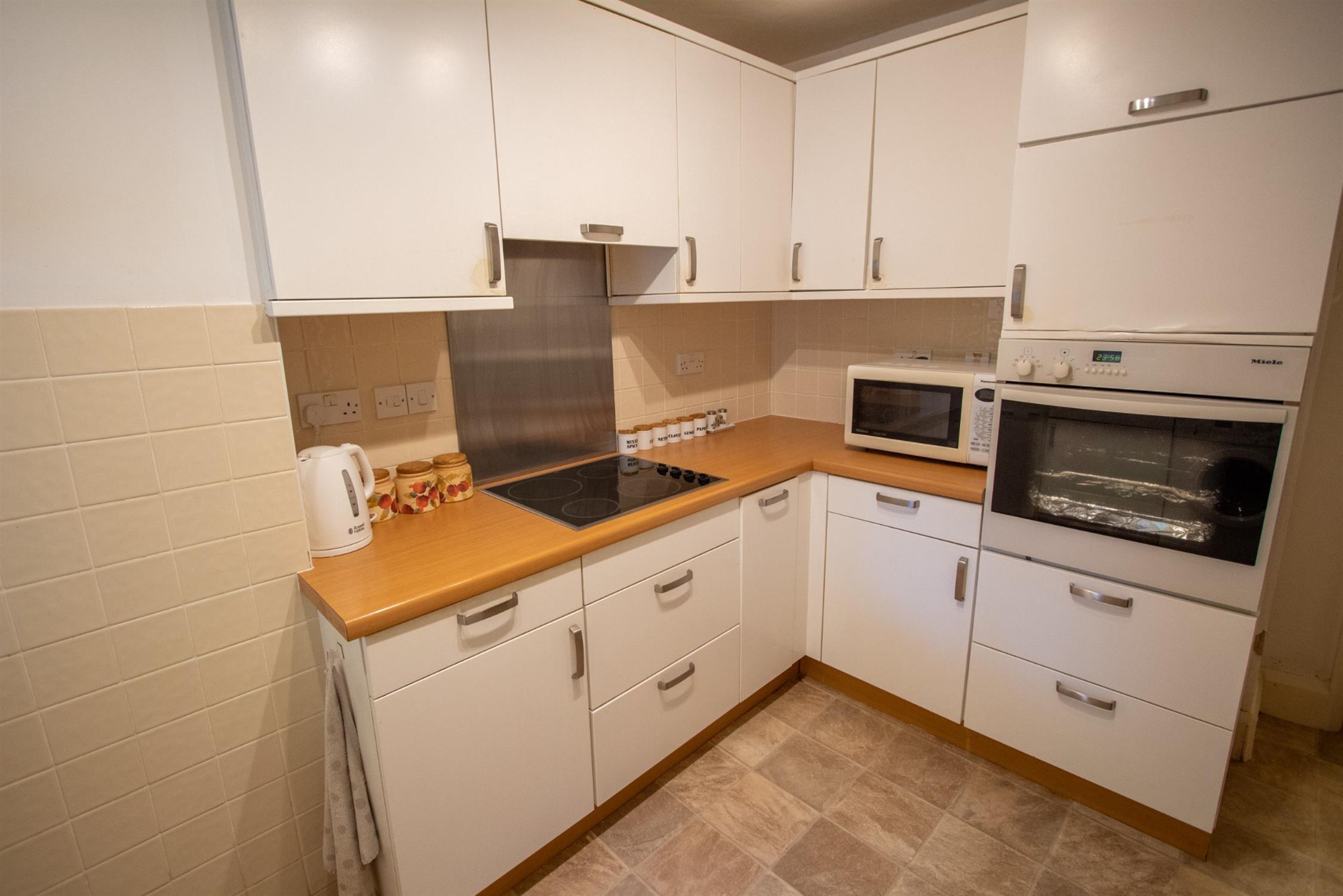 The apartment can be found in the original part of the building and is Grade II listed. The apartment is approached via a communal entrance hallway, with a door into the apartment comprising: entrance hallway with a large storage cupboard, a kitchen which is fitted with a range of wall and base units, worktop surfaces, a built-in oven and hob with an extractor hood over. The living room is a beautiful room with a feature bay window, which enjoys an attractive outlook over rooftops to the countryside beyond. There is also an ornamental fireplace and an electric heater. The double bedroom is a lovely dual-aspect room with an electric heater. There is also a shower room.