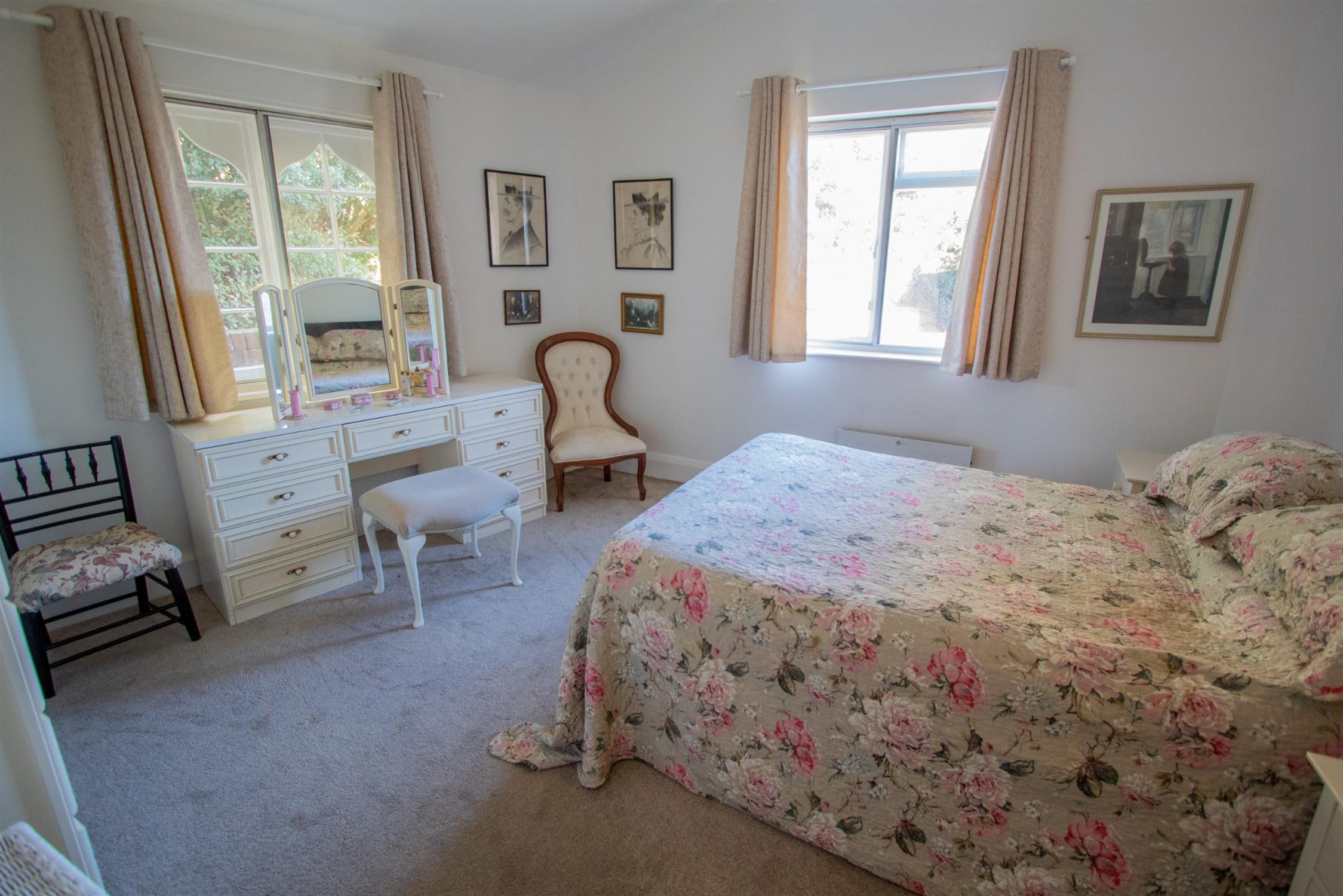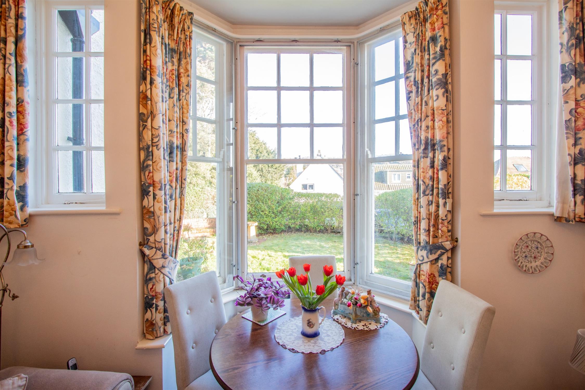 Ground floor apartment for the over 55s, Grade II listed, beautiful living room with a feature bay window.