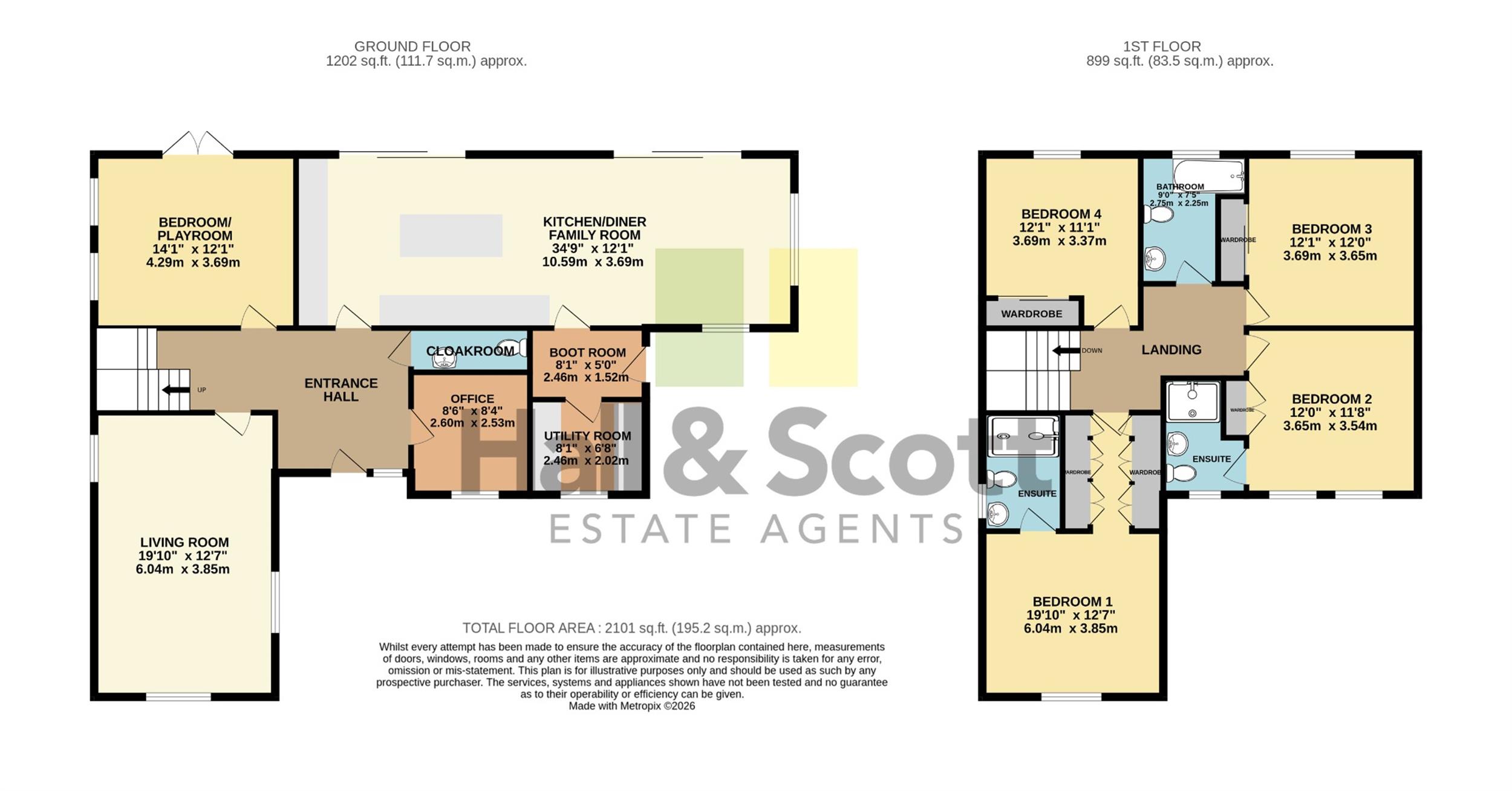 On the first floor there are 4 double bedrooms. The master has a dressing area with a range of wardrobes, an en-suite shower room with tiled walls and flooring with underfloor heating, a guest bedroom with built-in wardrobes and an en-suite shower room and 2 further bedrooms both with built-in wardrobes and a family bathroom suite.