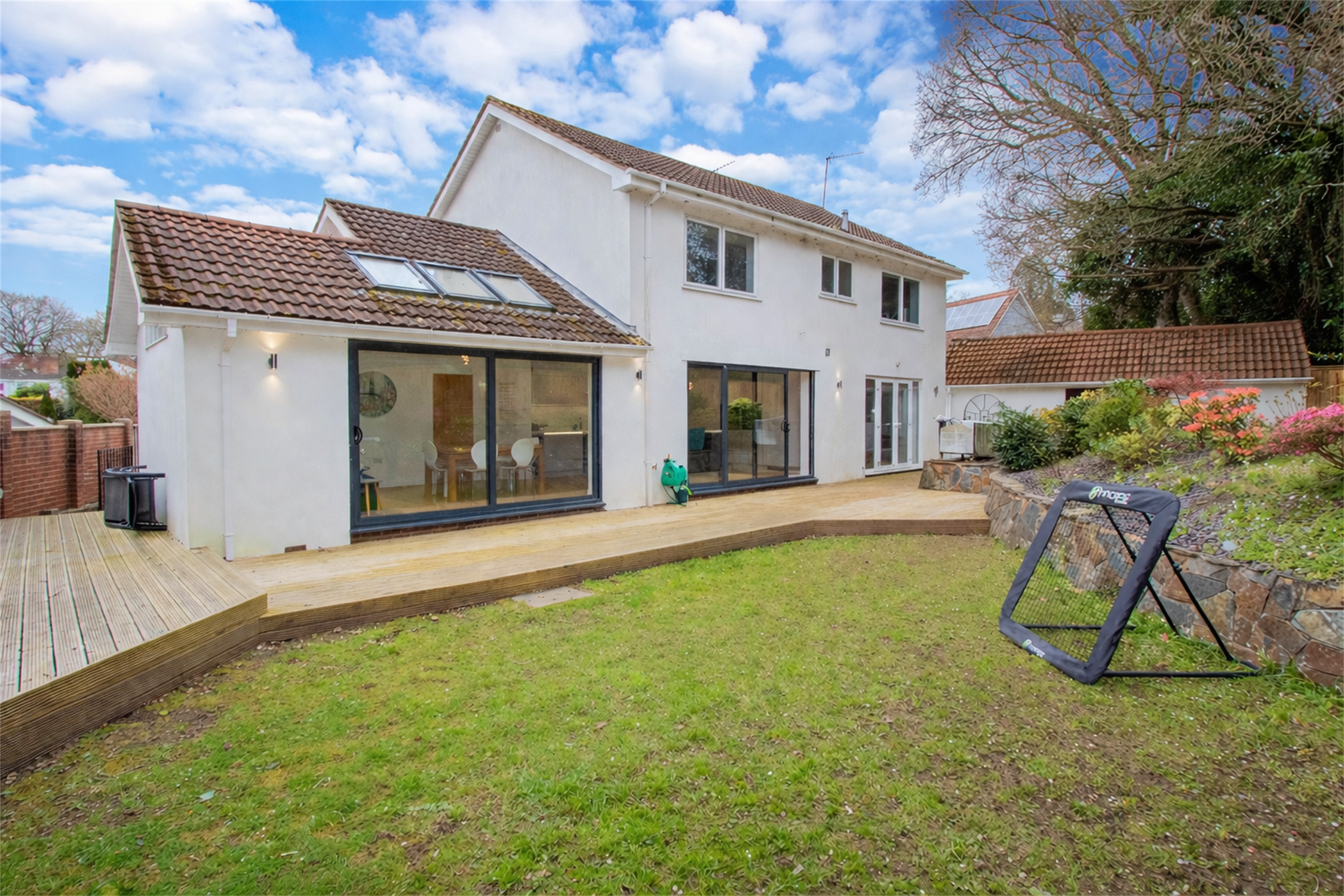 The outsideTo the front and side is a driveway offering ample parking and leads to a single garage up and over the door. The front garden is laid to lawn, side access to the rear garden with a large timber-decked patio, lawned garden, well stocked with shrubs.