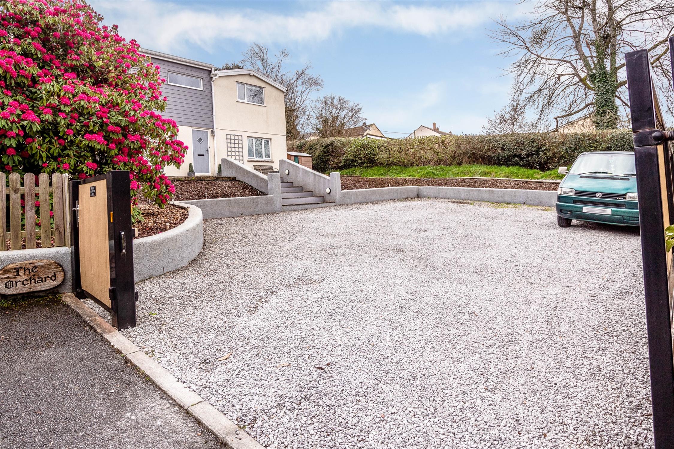 The property is located at the end of a private lane. There are electric gates which open to a large gravelled parking area offering ample parking, space for a garage (subject to the necessary consents) side access to the rear garden with paved patio, gravelled patio, raised gravelled patio, steps to a timber decked patio, waterfall feature, lawned garden.